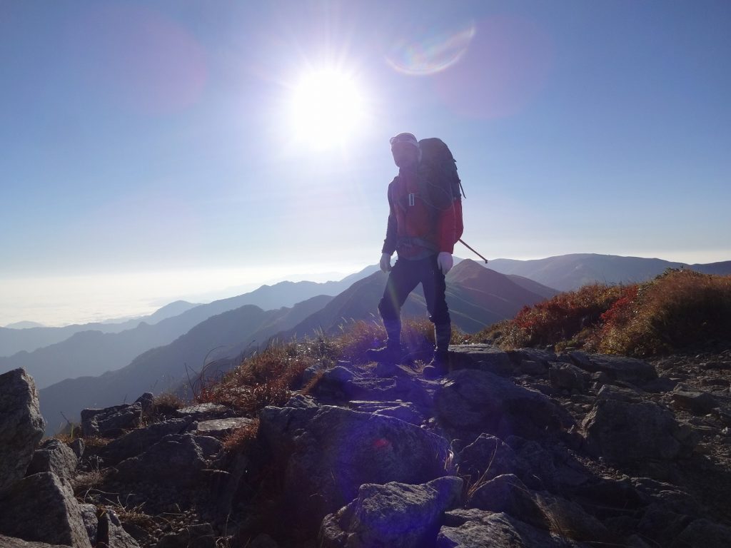 今回の縦走登山も終わりに近づいてきました。秋の終わりに3日間の晴天に恵まれることなど、私の人生ではもうないかもしれません。一歩一歩普通に歩けることに感謝です。両足君だけでなく、心臓君や胃袋君も無言で協力してくれました。また、一人ぼっちで山遊びしましたが、両足君や心臓君、胃袋君こんな仲間がいることをうれしく思うわけです。