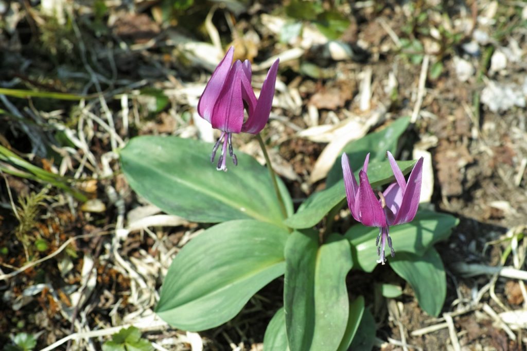 樹林帯ではカタクリやショウジョウバカマ。稜線まで登ったら、遠くの山波や足下のシャクナゲ、山桜をじっくり眺めてましたが、ネマガリタケはただの背景でした。極めて強い生命力があり、すぐに登山道を塞ぐ厄介者でもあります。