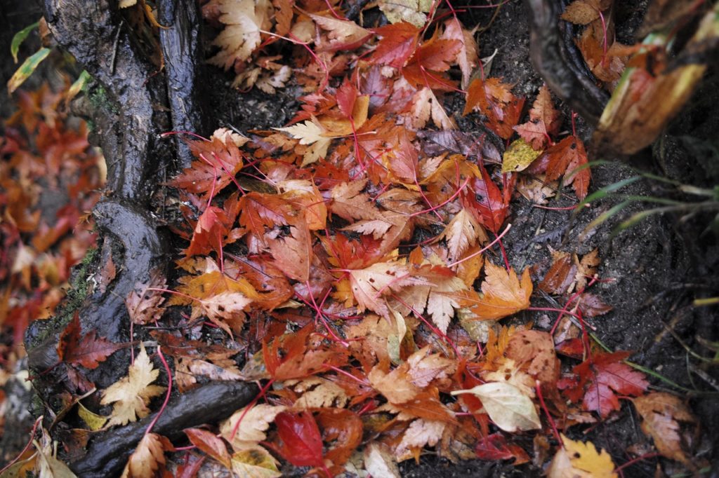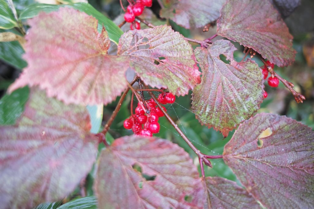 まず1つ目、遠くではなく近くの木々葉をじっくり観賞しましょう。燃えるような全山紅葉は見られません。しかしながら、雨に濡れた木々の美しさにあなたは心を奪われるに違いありません。重装備で潜水して珊瑚を見る人もいるのです。雨具さえ身に付けていればこの景色に出会えるのですから、知らないヒトはかわいそうだなあ、この喜びを伝えたい、でも騒がしくならないで、と私の心は揺れ動くのであります。